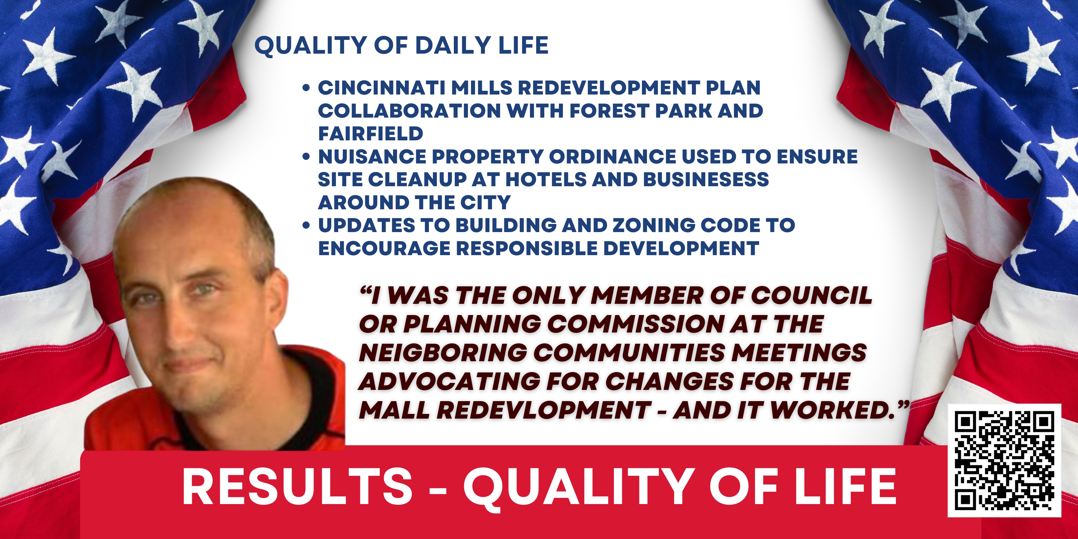 I have lived in Springdale most of my life growing up in Heritage Hill, graduating from Princeton High School (where I met my wife of more than 25 years – Karen), and after a short stay in Chicago moved back to Oxford Hills 22 years ago where we have been busy with 3 sons, a career, and all the joys and challenges of modern day family life.